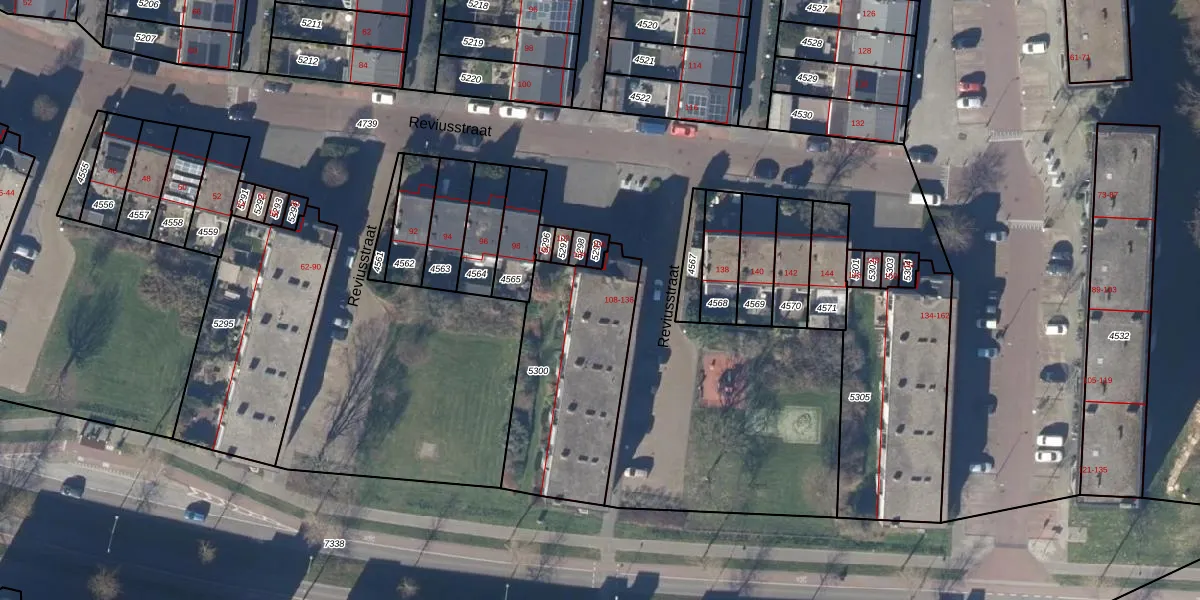 Het perceel waarop Reviusstraat 118 staat heeft een oppervlakte van 708 m². Dit is een groot perceel. De perceeloppervlakte wordt geregistreerd door het Kadaster. Gedetailleerde informatie over de maten van dit perceel kunt u vinden in het rapport Kadastrale kaart met maatvoering van Reviusstraat 118.