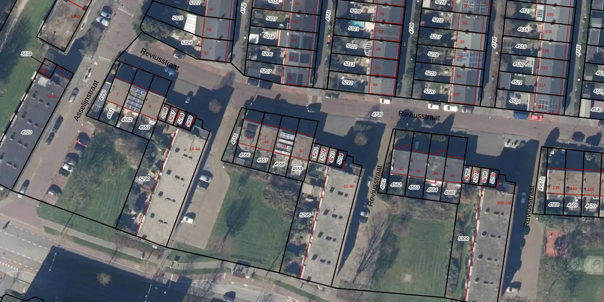 Het perceel waarop Reviusstraat 52 staat heeft een oppervlakte van 126 m². Dit is een middelgroot perceel. De perceeloppervlakte wordt geregistreerd door het Kadaster. Gedetailleerde informatie over de maten van dit perceel kunt u vinden in het rapport Kadastrale kaart met maatvoering van Reviusstraat 52.