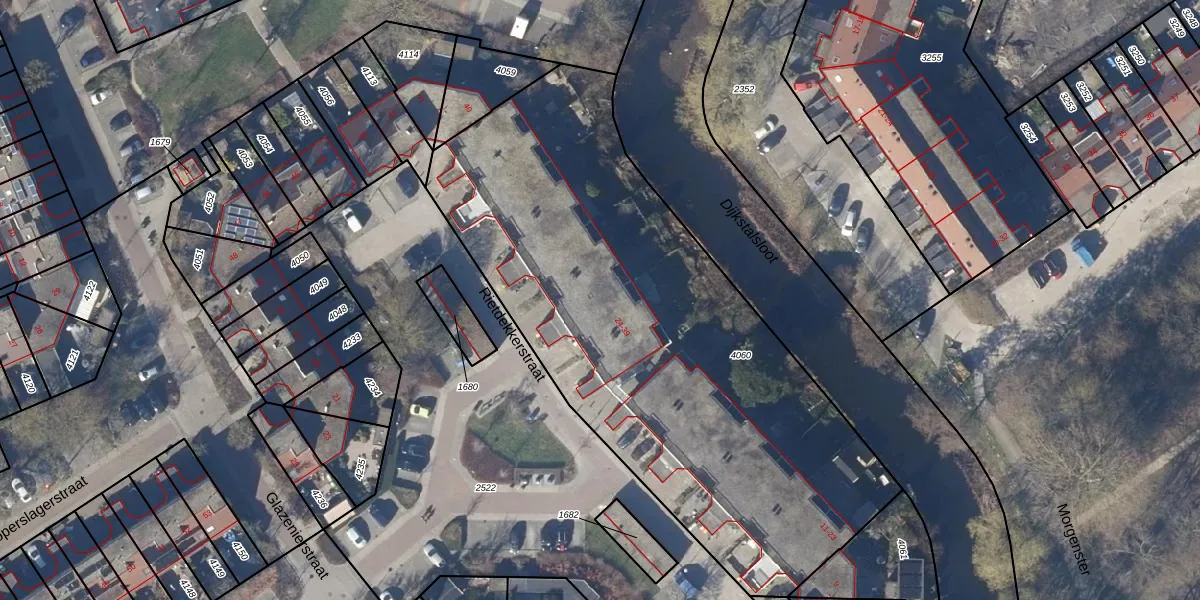 Het perceel waarop Rietdekkerstraat 26 staat heeft een oppervlakte van 3018 m². Dit is een zeer groot perceel. De perceeloppervlakte wordt geregistreerd door het Kadaster. Gedetailleerde informatie over de maten van dit perceel kunt u vinden in het rapport Kadastrale kaart met maatvoering van Rietdekkerstraat 26.