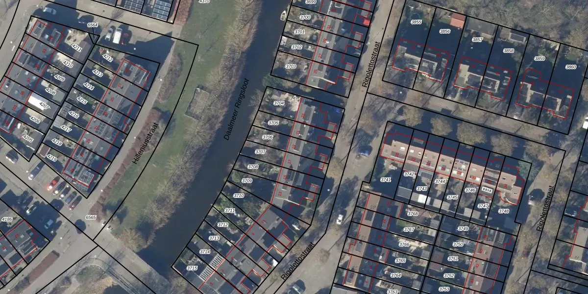 Het perceel waarop Rigolettostraat 19 staat heeft een oppervlakte van 157 m². Dit is een middelgroot perceel. De perceeloppervlakte wordt geregistreerd door het Kadaster. Gedetailleerde informatie over de maten van dit perceel kunt u vinden in het rapport Kadastrale kaart met maatvoering van Rigolettostraat 19.