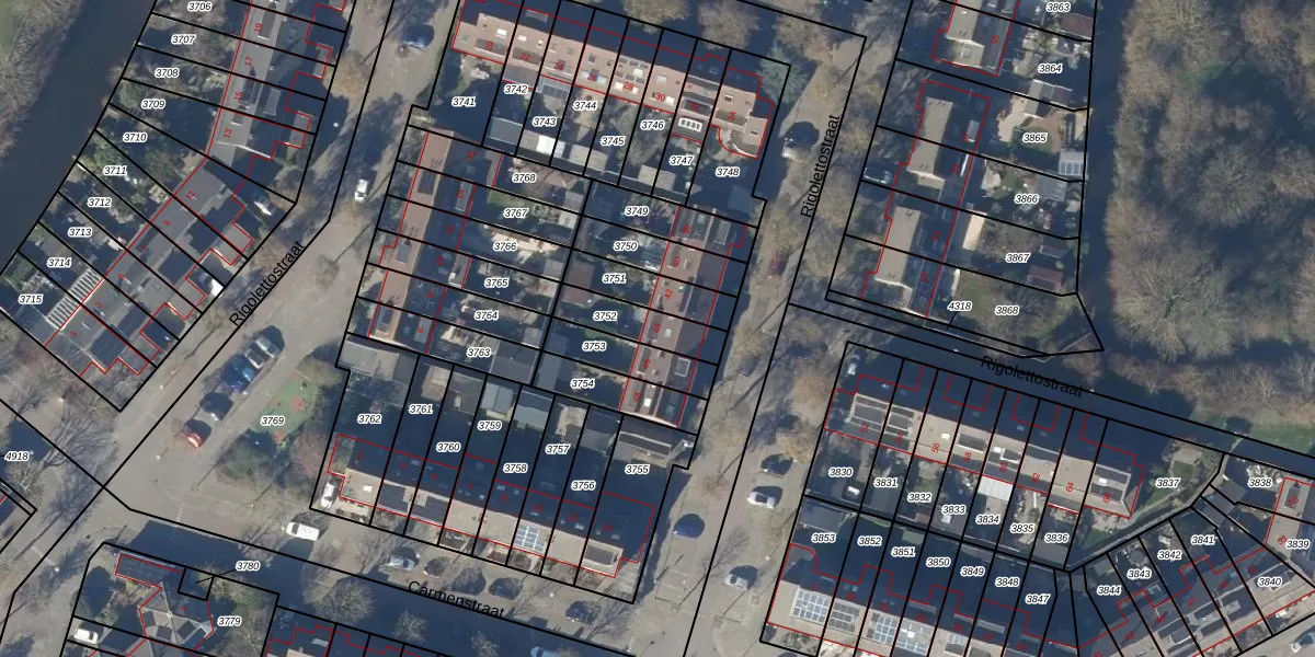 Het perceel waarop Rigolettostraat 44 staat heeft een oppervlakte van 142 m². Dit is een middelgroot perceel. De perceeloppervlakte wordt geregistreerd door het Kadaster. Gedetailleerde informatie over de maten van dit perceel kunt u vinden in het rapport Kadastrale kaart met maatvoering van Rigolettostraat 44.