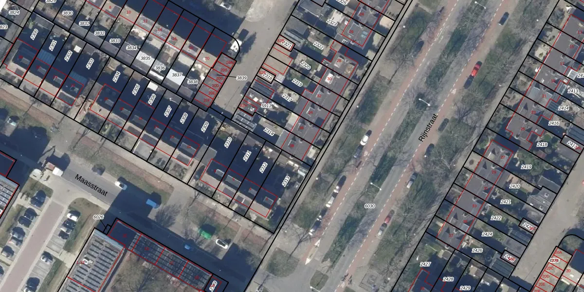 Het perceel waarop Rijnstraat 38 staat heeft een oppervlakte van 198 m². Dit is een middelgroot perceel. De perceeloppervlakte wordt geregistreerd door het Kadaster. Gedetailleerde informatie over de maten van dit perceel kunt u vinden in het rapport Kadastrale kaart met maatvoering van Rijnstraat 38.
