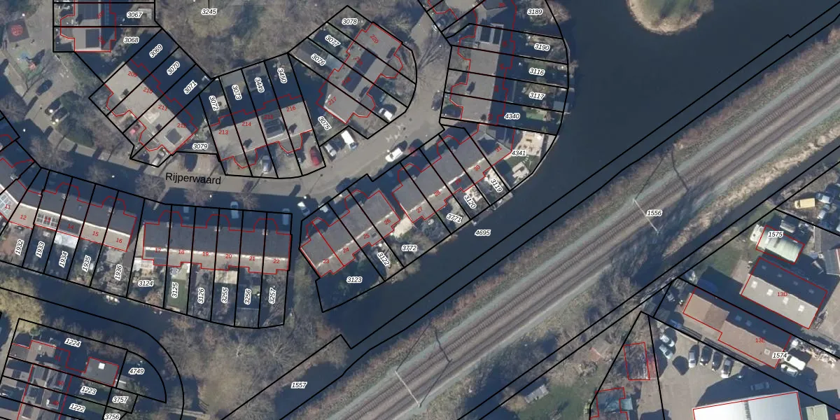 Het perceel waarop Rijperwaard 27 staat heeft een oppervlakte van 302 m². Dit is een groot perceel. De perceeloppervlakte wordt geregistreerd door het Kadaster. Gedetailleerde informatie over de maten van dit perceel kunt u vinden in het rapport Kadastrale kaart met maatvoering van Rijperwaard 27.