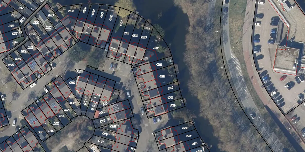 Het perceel waarop Rijperwaard 66 staat heeft een oppervlakte van 301 m². Dit is een groot perceel. De perceeloppervlakte wordt geregistreerd door het Kadaster. Gedetailleerde informatie over de maten van dit perceel kunt u vinden in het rapport Kadastrale kaart met maatvoering van Rijperwaard 66.
