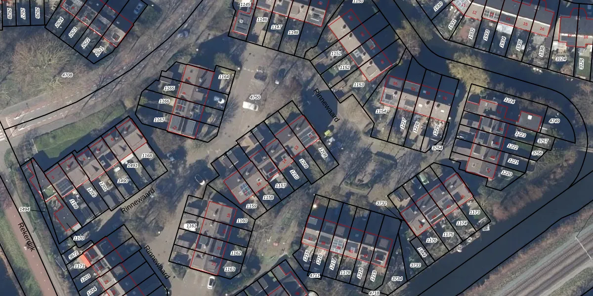 Het perceel waarop Rinnewaard 13 staat heeft een oppervlakte van 152 m². Dit is een middelgroot perceel. De perceeloppervlakte wordt geregistreerd door het Kadaster. Gedetailleerde informatie over de maten van dit perceel kunt u vinden in het rapport Kadastrale kaart met maatvoering van Rinnewaard 13.