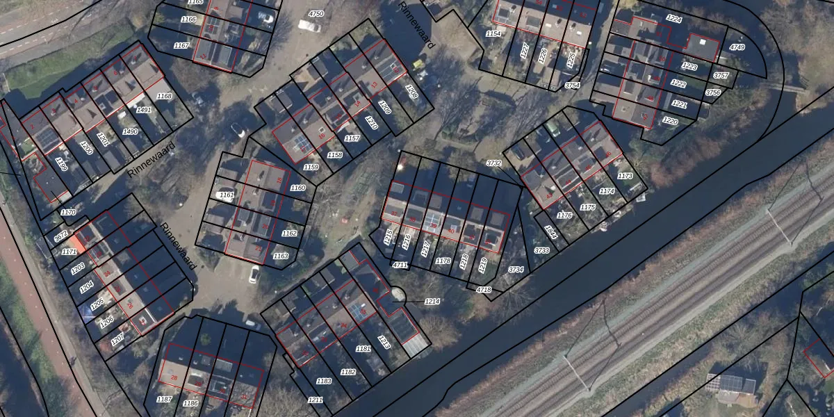 Het perceel waarop Rinnewaard 38 staat heeft een oppervlakte van 123 m². Dit is een middelgroot perceel. De perceeloppervlakte wordt geregistreerd door het Kadaster. Gedetailleerde informatie over de maten van dit perceel kunt u vinden in het rapport Kadastrale kaart met maatvoering van Rinnewaard 38.