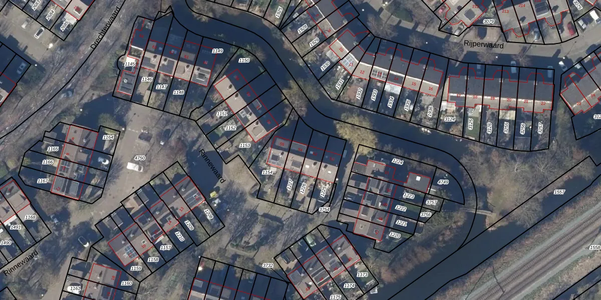 Het perceel waarop Rinnewaard 54 staat heeft een oppervlakte van 162 m². Dit is een middelgroot perceel. De perceeloppervlakte wordt geregistreerd door het Kadaster. Gedetailleerde informatie over de maten van dit perceel kunt u vinden in het rapport Kadastrale kaart met maatvoering van Rinnewaard 54.