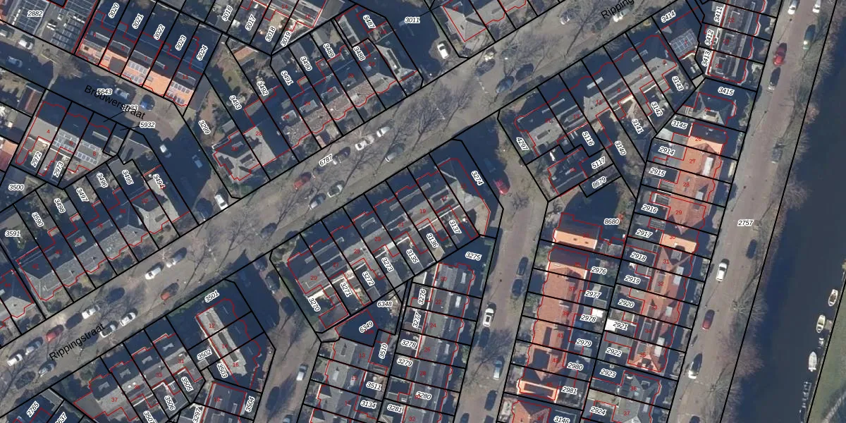 Gebruik de zoekbalk of klik op een perceel voor informatie over de adressen binnen dit perceel.