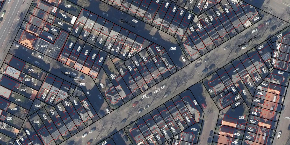 Gebruik de zoekbalk of klik op een perceel voor informatie over de adressen binnen dit perceel.