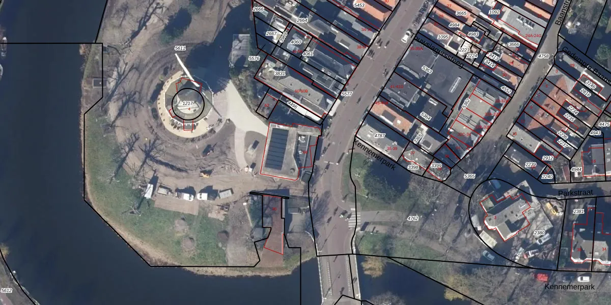 Gebruik de zoekbalk of klik op een perceel voor informatie over de adressen binnen dit perceel.