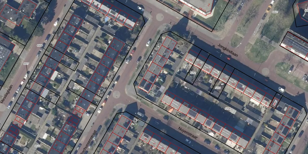 Het perceel waarop Rochussenstraat 9 staat heeft een oppervlakte van 4612 m². Dit is een zeer groot perceel. De perceeloppervlakte wordt geregistreerd door het Kadaster. Gedetailleerde informatie over de maten van dit perceel kunt u vinden in het rapport Kadastrale kaart met maatvoering van Rochussenstraat 9.