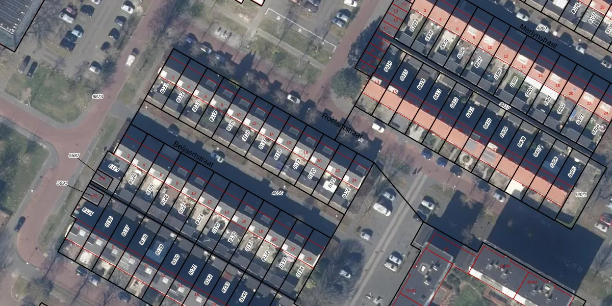 Gebruik de zoekbalk of klik op een perceel voor informatie over de adressen binnen dit perceel.