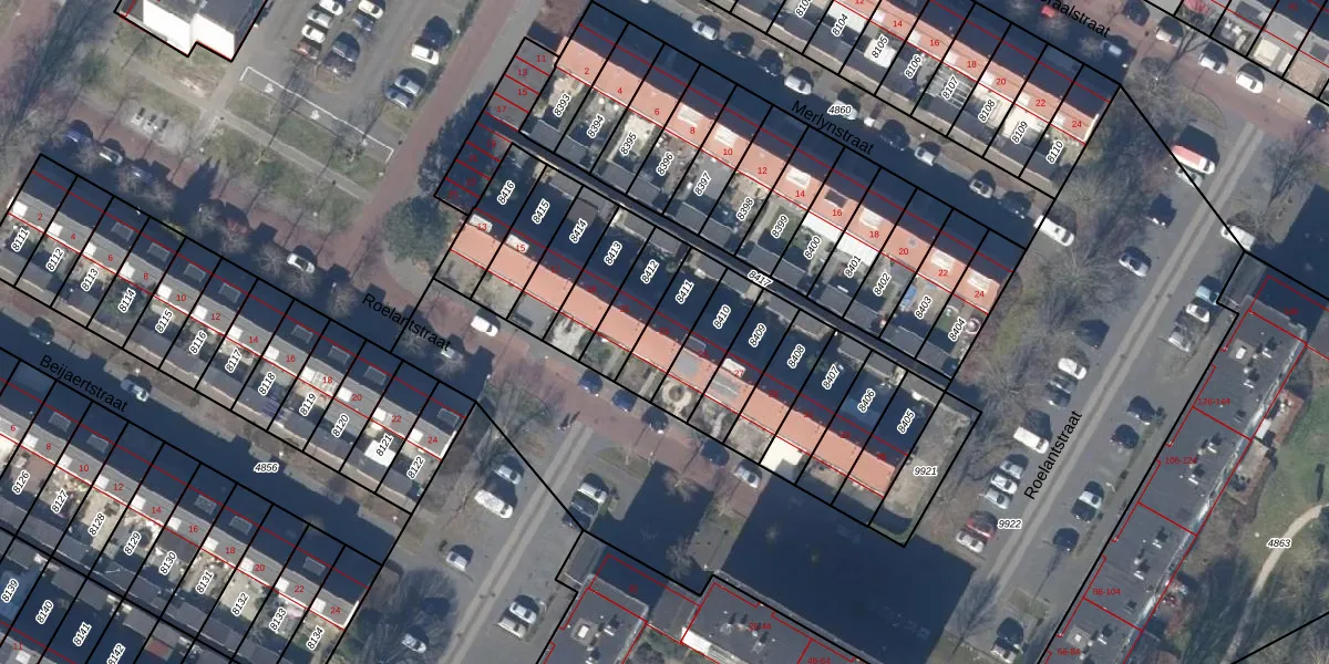 Het perceel waarop Roelantstraat 23 staat heeft een oppervlakte van 147 m². Dit is een middelgroot perceel. De perceeloppervlakte wordt geregistreerd door het Kadaster. Gedetailleerde informatie over de maten van dit perceel kunt u vinden in het rapport Kadastrale kaart met maatvoering van Roelantstraat 23.