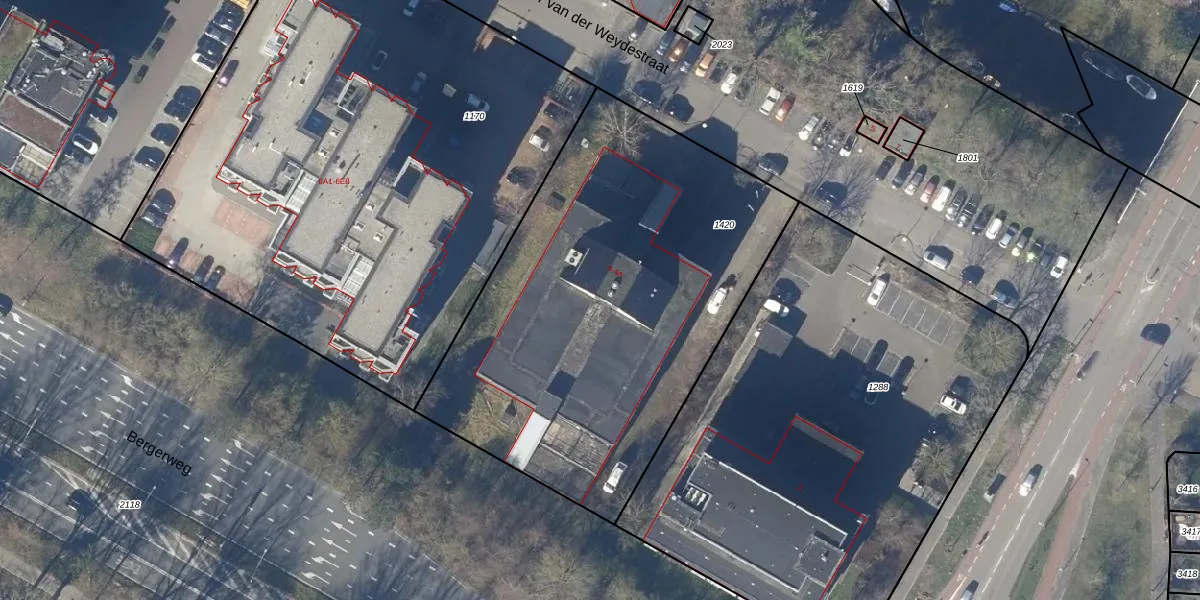 Het perceel waarop Rogier van der Weydestraat 4-A staat heeft een oppervlakte van 2414 m². Dit is een zeer groot perceel. De perceeloppervlakte wordt geregistreerd door het Kadaster. Gedetailleerde informatie over de maten van dit perceel kunt u vinden in het rapport Kadastrale kaart met maatvoering van Rogier van der Weydestraat 4-A.
