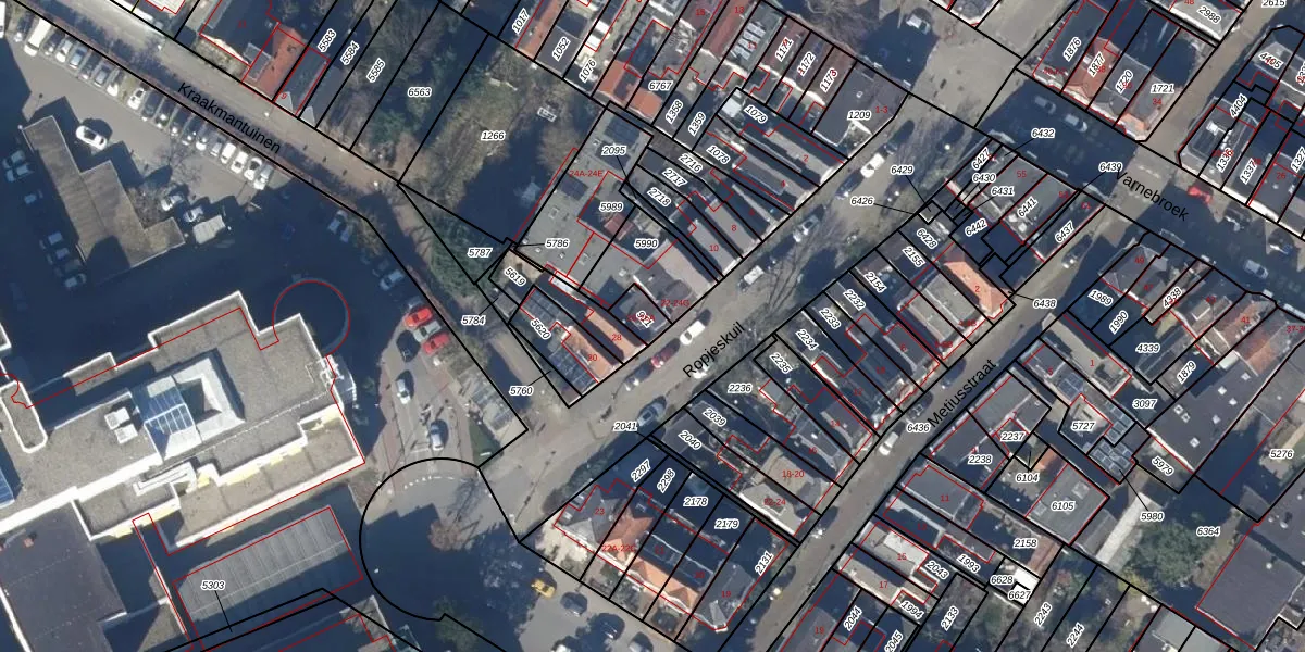 Het perceel waarop Ropjeskuil 26 staat heeft een oppervlakte van 44 m². Dit is een klein perceel. De perceeloppervlakte wordt geregistreerd door het Kadaster. Gedetailleerde informatie over de maten van dit perceel kunt u vinden in het rapport Kadastrale kaart met maatvoering van Ropjeskuil 26.