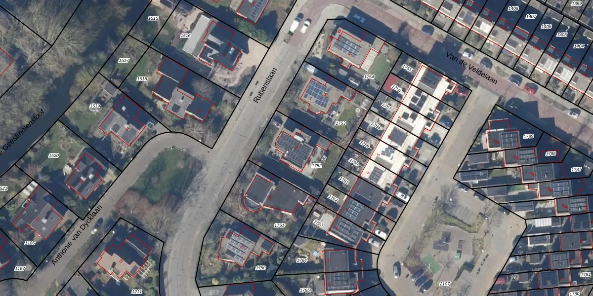Het perceel waarop Rubenslaan 28 staat heeft een oppervlakte van 523 m². Dit is een groot perceel. De perceeloppervlakte wordt geregistreerd door het Kadaster. Gedetailleerde informatie over de maten van dit perceel kunt u vinden in het rapport Kadastrale kaart met maatvoering van Rubenslaan 28.