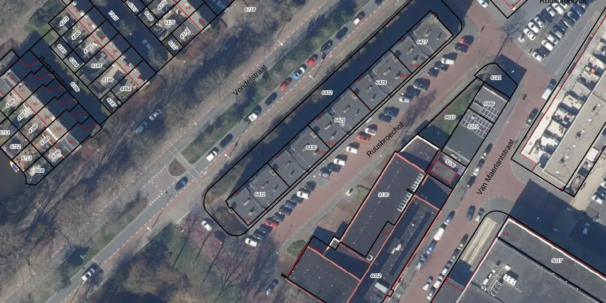 Het perceel waarop Ruusbroechof 13 staat heeft een oppervlakte van 204 m². Dit is een middelgroot perceel. De perceeloppervlakte wordt geregistreerd door het Kadaster. Gedetailleerde informatie over de maten van dit perceel kunt u vinden in het rapport Kadastrale kaart met maatvoering van Ruusbroechof 13.