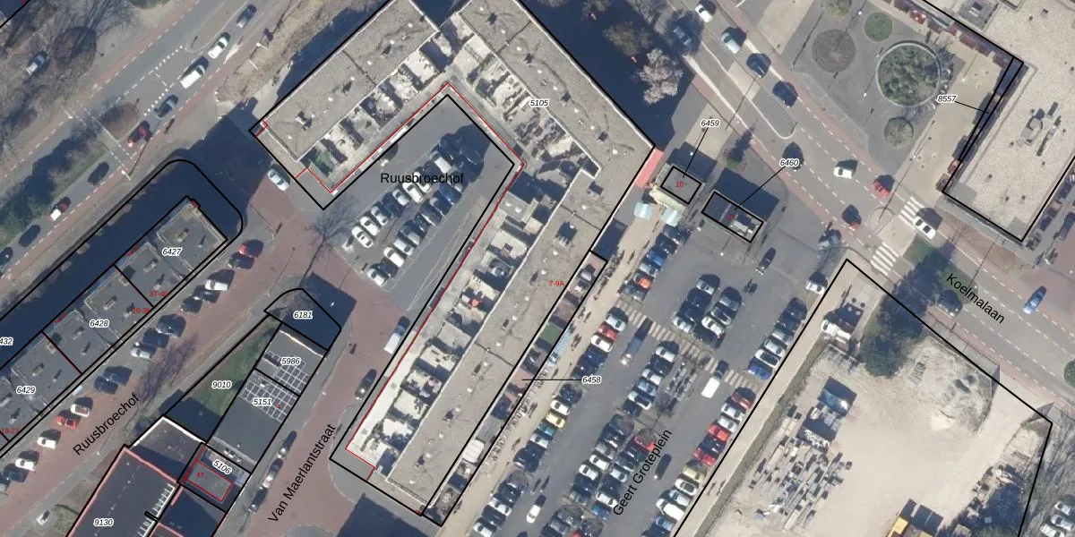 Het perceel waarop Ruusbroechof 65 staat heeft een oppervlakte van 3150 m². Dit is een zeer groot perceel. De perceeloppervlakte wordt geregistreerd door het Kadaster. Gedetailleerde informatie over de maten van dit perceel kunt u vinden in het rapport Kadastrale kaart met maatvoering van Ruusbroechof 65.