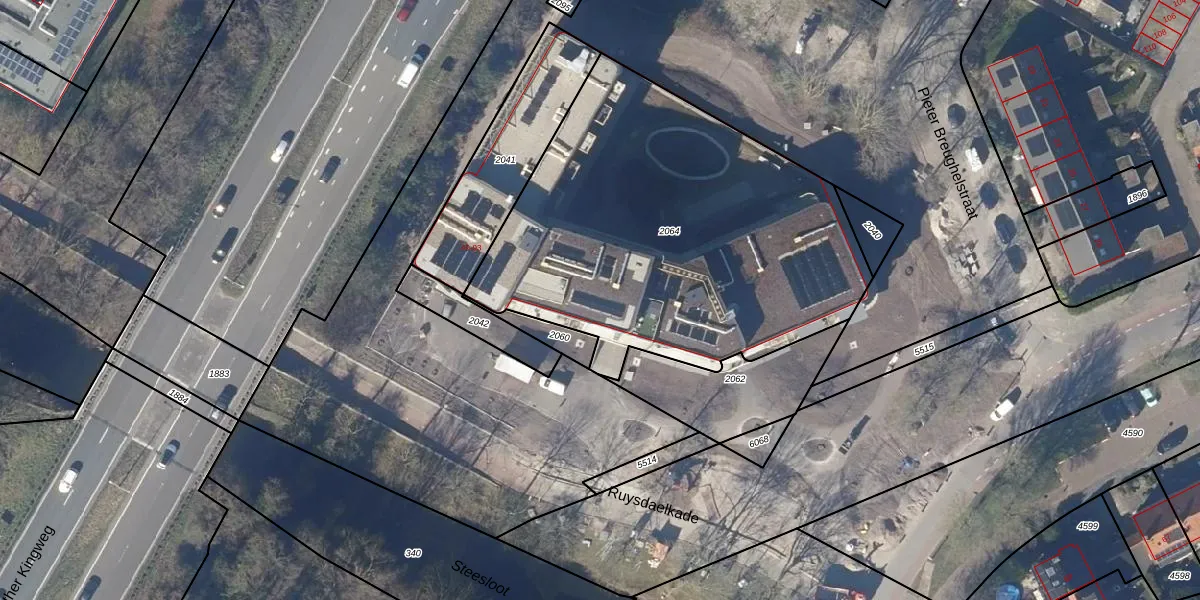 Het perceel waarop Ruysdaelkade 44 staat heeft een oppervlakte van 2179 m². Dit is een zeer groot perceel. De perceeloppervlakte wordt geregistreerd door het Kadaster. Gedetailleerde informatie over de maten van dit perceel kunt u vinden in het rapport Kadastrale kaart met maatvoering van Ruysdaelkade 44.