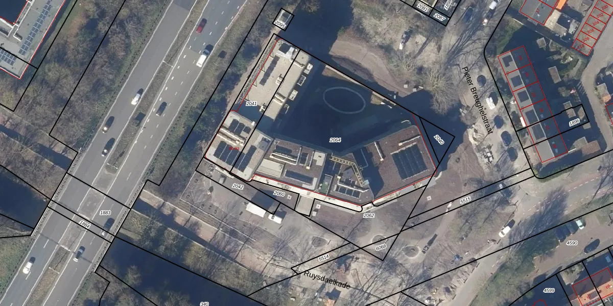 Het perceel waarop Ruysdaelkade 82 staat heeft een oppervlakte van 2179 m². Dit is een zeer groot perceel. De perceeloppervlakte wordt geregistreerd door het Kadaster. Gedetailleerde informatie over de maten van dit perceel kunt u vinden in het rapport Kadastrale kaart met maatvoering van Ruysdaelkade 82.