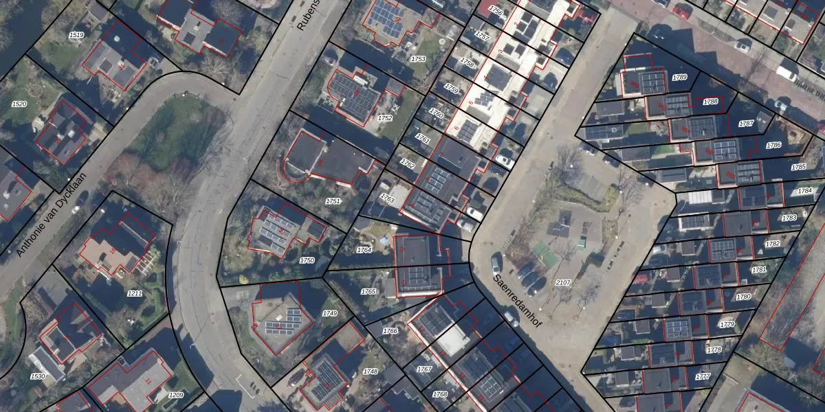 Het perceel waarop Saenredamhof 9 staat heeft een oppervlakte van 245 m². Dit is een middelgroot perceel. De perceeloppervlakte wordt geregistreerd door het Kadaster. Gedetailleerde informatie over de maten van dit perceel kunt u vinden in het rapport Kadastrale kaart met maatvoering van Saenredamhof 9.