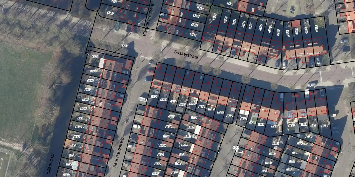 Het perceel waarop Saskerstraat 170 staat heeft een oppervlakte van 134 m². Dit is een middelgroot perceel. De perceeloppervlakte wordt geregistreerd door het Kadaster. Gedetailleerde informatie over de maten van dit perceel kunt u vinden in het rapport Kadastrale kaart met maatvoering van Saskerstraat 170.