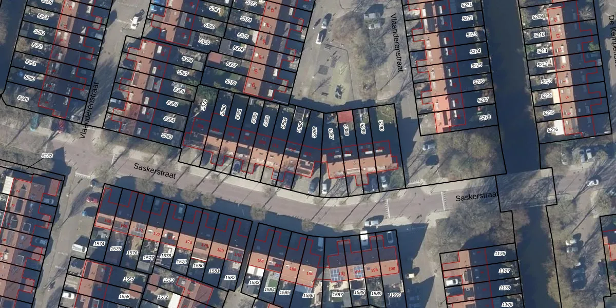 Gebruik de zoekbalk of klik op een perceel voor informatie over de adressen binnen dit perceel.
