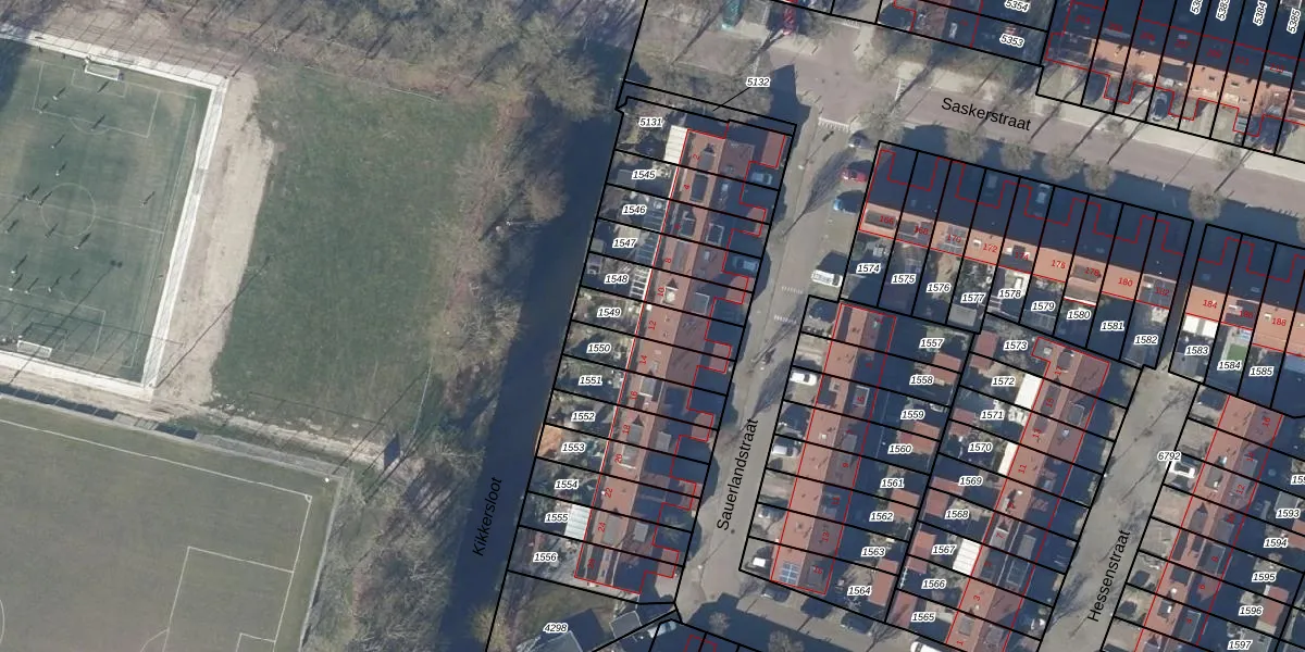 Gebruik de zoekbalk of klik op een perceel voor informatie over de adressen binnen dit perceel.