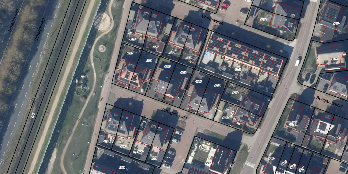 Schagerweide 6 is gelegen op kadastraal perceel AMR01L4118. Deze kadastrale aanduiding is uniek en wordt gebruikt door het Kadaster om eigendomsrechten en andere zakelijke rechten vast te leggen. Het perceel maakt onderdeel uit van de kadastrale gemeente Alkmaar.