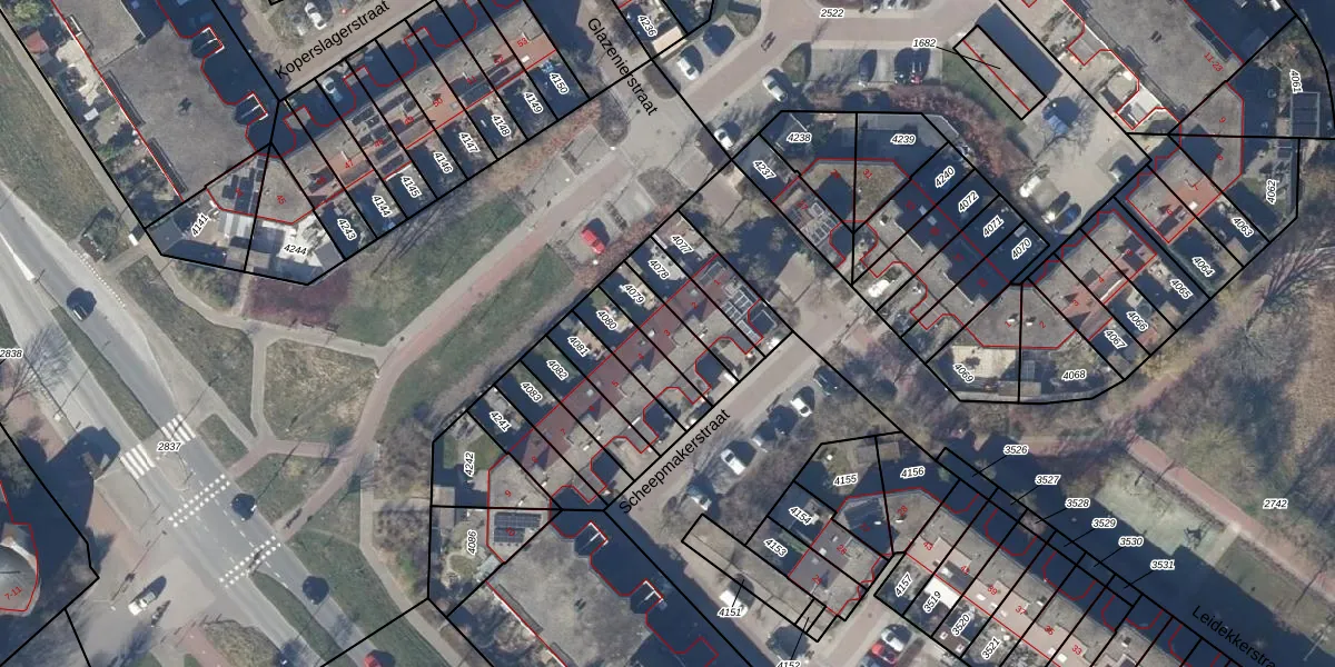 Gebruik de zoekbalk of klik op een perceel voor informatie over de adressen binnen dit perceel.