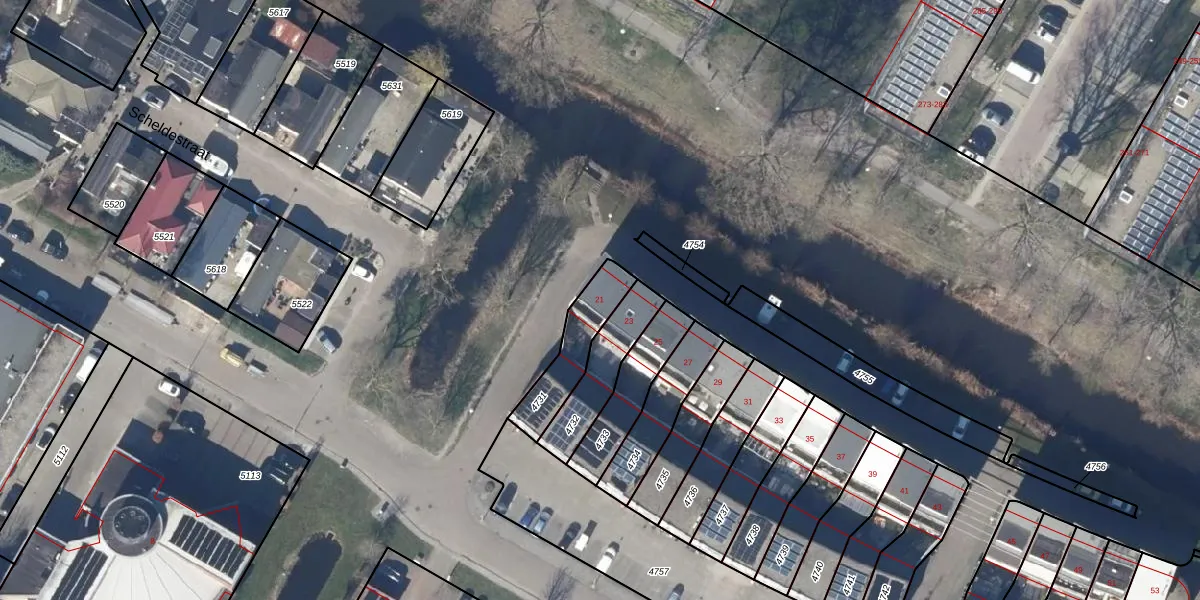 Scheldestraat 21 is gelegen op kadastraal perceel ODP02A4731. Deze kadastrale aanduiding is uniek en wordt gebruikt door het Kadaster om eigendomsrechten en andere zakelijke rechten vast te leggen. Het perceel maakt onderdeel uit van de kadastrale gemeente Oudorp.