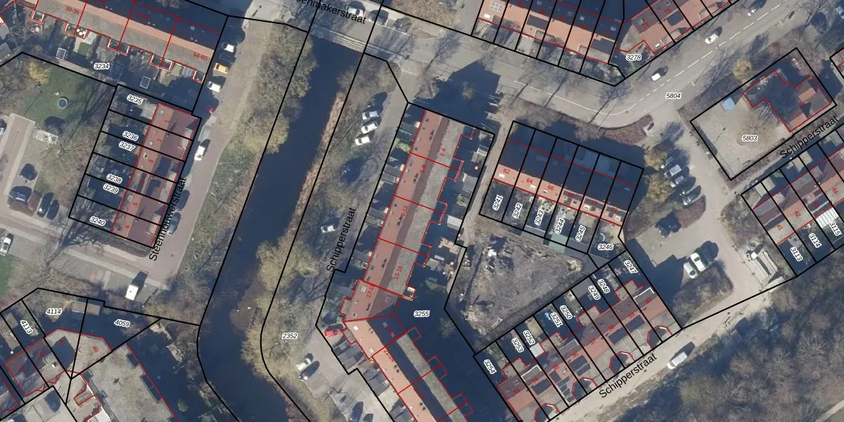 Het perceel waarop Schipperstraat 10 staat heeft een oppervlakte van 2165 m². Dit is een zeer groot perceel. De perceeloppervlakte wordt geregistreerd door het Kadaster. Gedetailleerde informatie over de maten van dit perceel kunt u vinden in het rapport Kadastrale kaart met maatvoering van Schipperstraat 10.