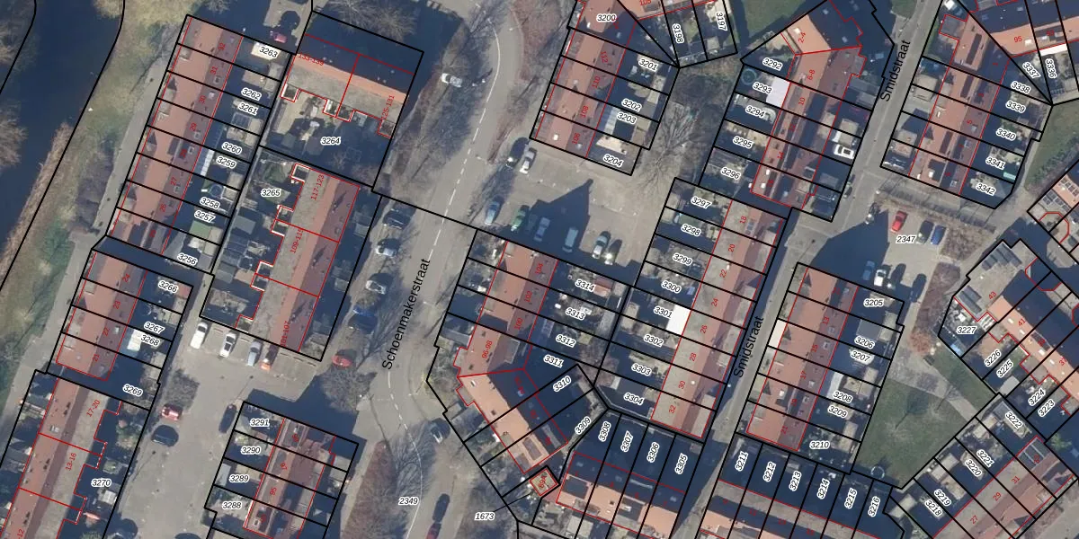 Het perceel waarop Schoenmakerstraat 104 staat heeft een oppervlakte van 169 m². Dit is een middelgroot perceel. De perceeloppervlakte wordt geregistreerd door het Kadaster. Gedetailleerde informatie over de maten van dit perceel kunt u vinden in het rapport Kadastrale kaart met maatvoering van Schoenmakerstraat 104.