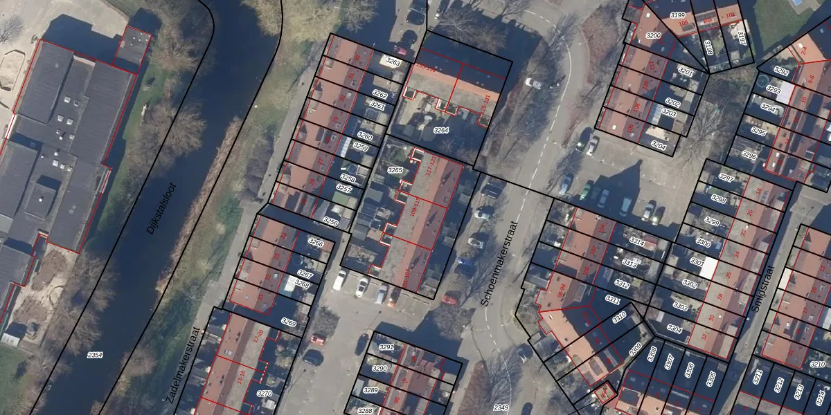 Het perceel waarop Schoenmakerstraat 115 staat heeft een oppervlakte van 824 m². Dit is een groot perceel. De perceeloppervlakte wordt geregistreerd door het Kadaster. Gedetailleerde informatie over de maten van dit perceel kunt u vinden in het rapport Kadastrale kaart met maatvoering van Schoenmakerstraat 115.