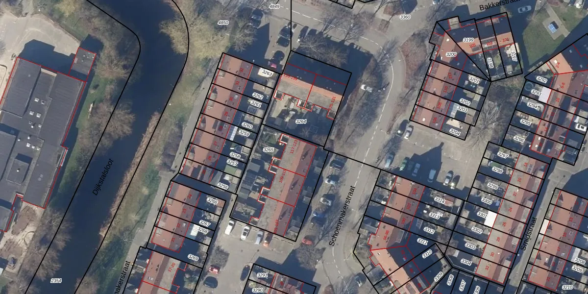 Het perceel waarop Schoenmakerstraat 123 staat heeft een oppervlakte van 824 m². Dit is een groot perceel. De perceeloppervlakte wordt geregistreerd door het Kadaster. Gedetailleerde informatie over de maten van dit perceel kunt u vinden in het rapport Kadastrale kaart met maatvoering van Schoenmakerstraat 123.