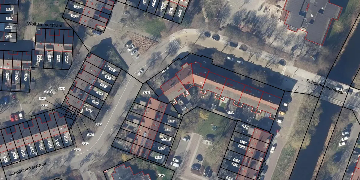 Het perceel waarop Schoenmakerstraat 20 staat heeft een oppervlakte van 1792 m². Dit is een zeer groot perceel. De perceeloppervlakte wordt geregistreerd door het Kadaster. Gedetailleerde informatie over de maten van dit perceel kunt u vinden in het rapport Kadastrale kaart met maatvoering van Schoenmakerstraat 20.