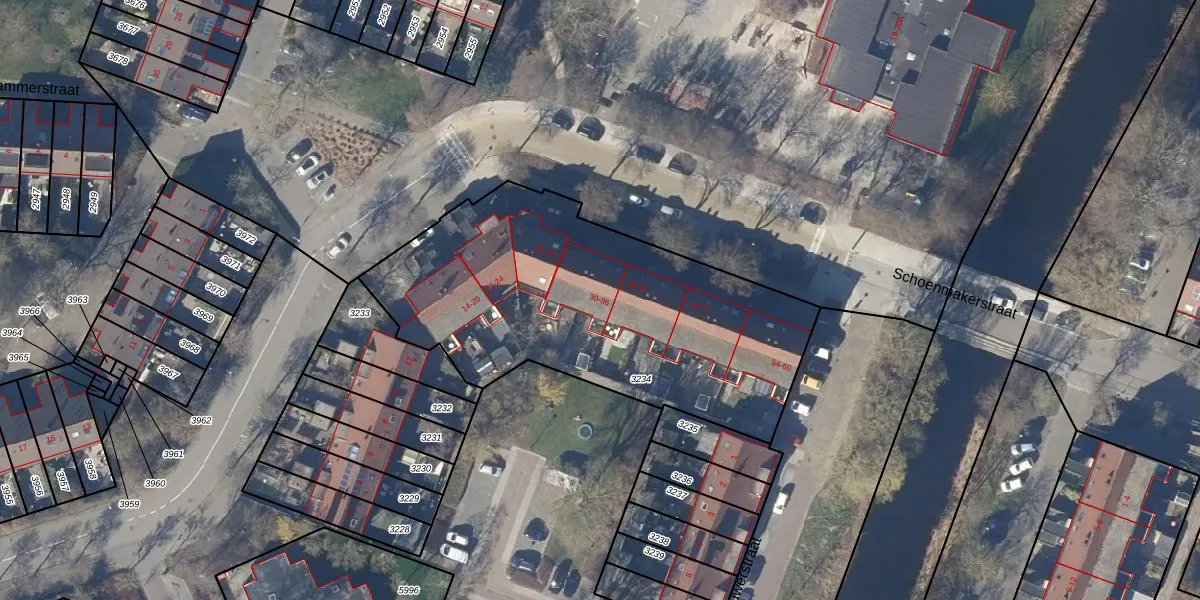 Het perceel waarop Schoenmakerstraat 36 staat heeft een oppervlakte van 1792 m². Dit is een zeer groot perceel. De perceeloppervlakte wordt geregistreerd door het Kadaster. Gedetailleerde informatie over de maten van dit perceel kunt u vinden in het rapport Kadastrale kaart met maatvoering van Schoenmakerstraat 36.