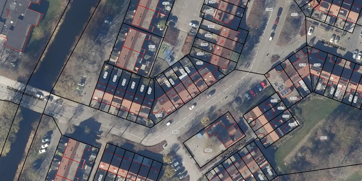 Gebruik de zoekbalk of klik op een perceel voor informatie over de adressen binnen dit perceel.