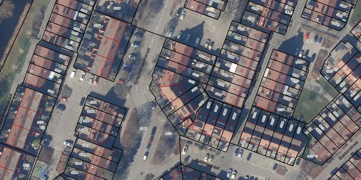 Het perceel waarop Schoenmakerstraat 94 staat heeft een oppervlakte van 362 m². Dit is een groot perceel. De perceeloppervlakte wordt geregistreerd door het Kadaster. Gedetailleerde informatie over de maten van dit perceel kunt u vinden in het rapport Kadastrale kaart met maatvoering van Schoenmakerstraat 94.