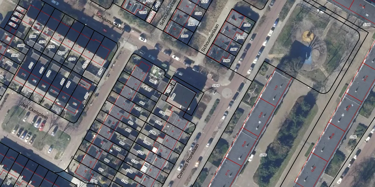 Het perceel waarop Schoumanlaan 1 staat heeft een oppervlakte van 144 m². Dit is een middelgroot perceel. De perceeloppervlakte wordt geregistreerd door het Kadaster. Gedetailleerde informatie over de maten van dit perceel kunt u vinden in het rapport Kadastrale kaart met maatvoering van Schoumanlaan 1.