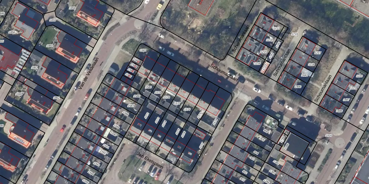 Het perceel waarop Schoumanlaan 13 staat heeft een oppervlakte van 150 m². Dit is een middelgroot perceel. De perceeloppervlakte wordt geregistreerd door het Kadaster. Gedetailleerde informatie over de maten van dit perceel kunt u vinden in het rapport Kadastrale kaart met maatvoering van Schoumanlaan 13.