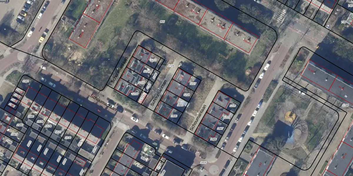 Het perceel waarop Schoumanlaan 14 staat heeft een oppervlakte van 101 m². Dit is een middelgroot perceel. De perceeloppervlakte wordt geregistreerd door het Kadaster. Gedetailleerde informatie over de maten van dit perceel kunt u vinden in het rapport Kadastrale kaart met maatvoering van Schoumanlaan 14.