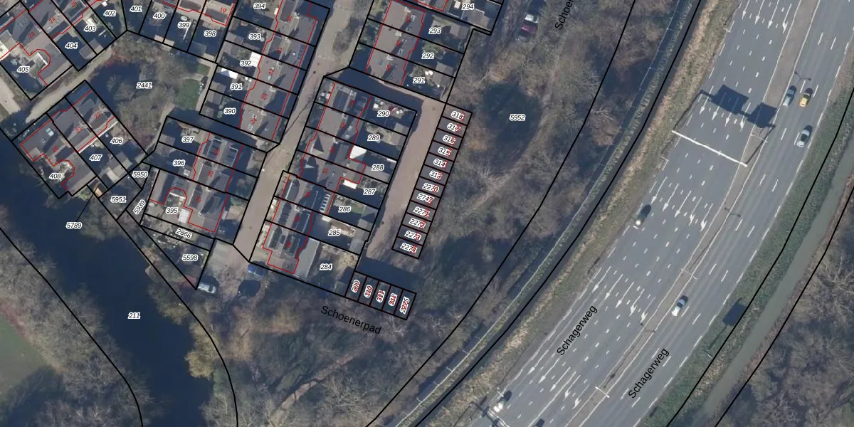Het perceel waarop Schouwstraat 109 staat heeft een oppervlakte van 20 m². Dit is een klein perceel. De perceeloppervlakte wordt geregistreerd door het Kadaster. Gedetailleerde informatie over de maten van dit perceel kunt u vinden in het rapport Kadastrale kaart met maatvoering van Schouwstraat 109.