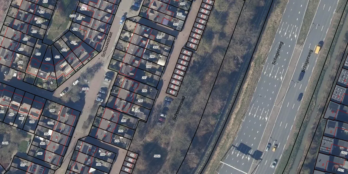 Het perceel waarop Schouwstraat 119 staat heeft een oppervlakte van 20 m². Dit is een klein perceel. De perceeloppervlakte wordt geregistreerd door het Kadaster. Gedetailleerde informatie over de maten van dit perceel kunt u vinden in het rapport Kadastrale kaart met maatvoering van Schouwstraat 119.