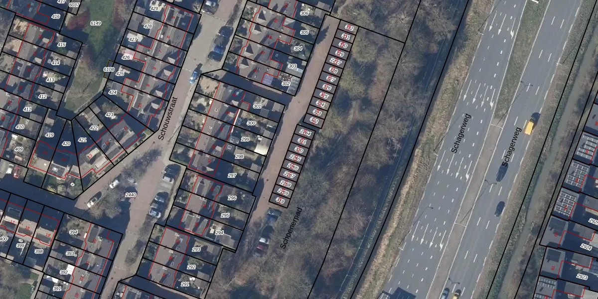 Het perceel waarop Schouwstraat 124 staat heeft een oppervlakte van 20 m². Dit is een klein perceel. De perceeloppervlakte wordt geregistreerd door het Kadaster. Gedetailleerde informatie over de maten van dit perceel kunt u vinden in het rapport Kadastrale kaart met maatvoering van Schouwstraat 124.