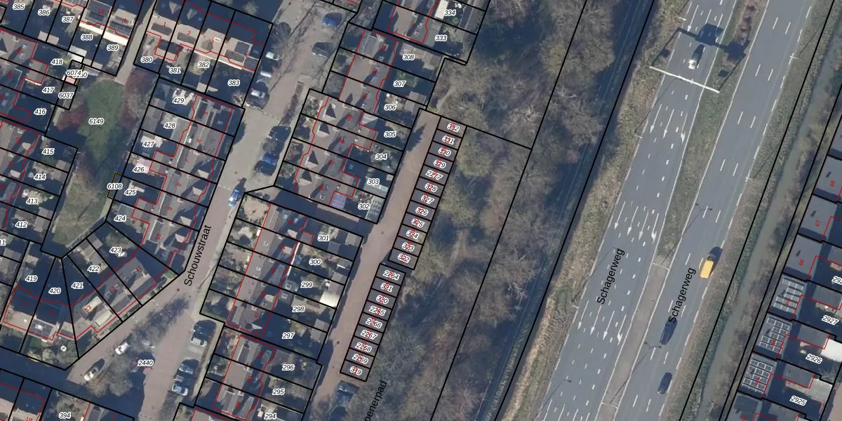 Het perceel waarop Schouwstraat 131 staat heeft een oppervlakte van 20 m². Dit is een klein perceel. De perceeloppervlakte wordt geregistreerd door het Kadaster. Gedetailleerde informatie over de maten van dit perceel kunt u vinden in het rapport Kadastrale kaart met maatvoering van Schouwstraat 131.