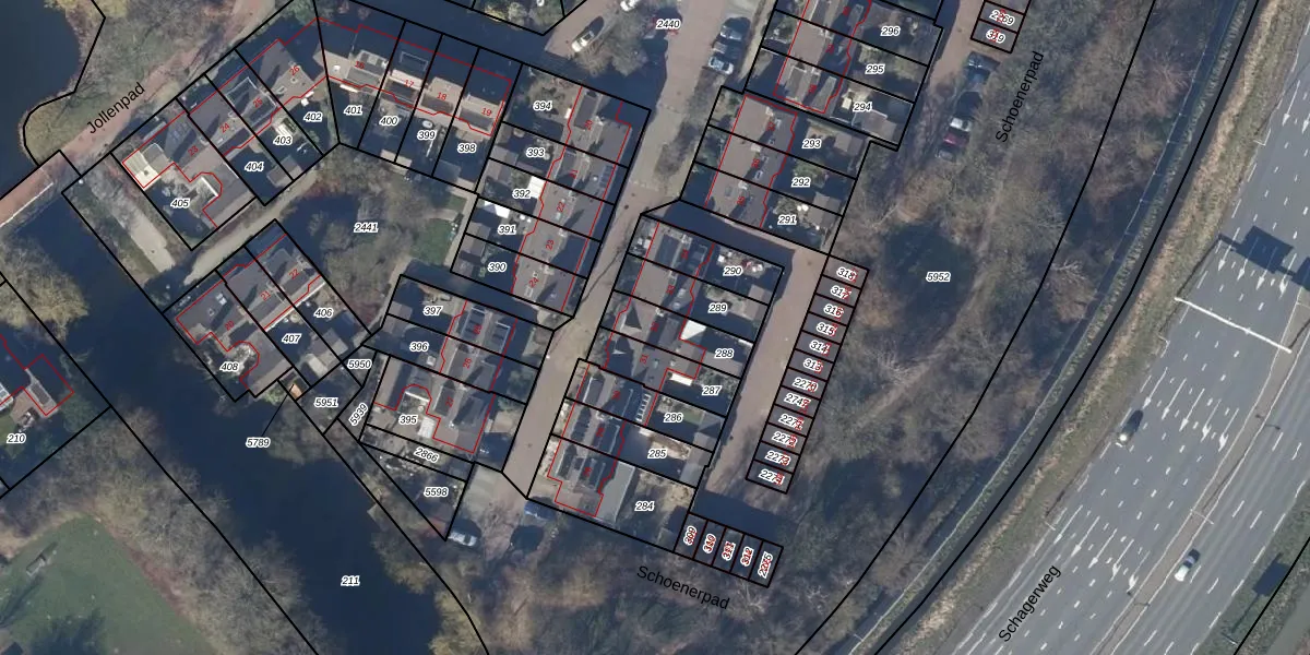 Gebruik de zoekbalk of klik op een perceel voor informatie over de adressen binnen dit perceel.