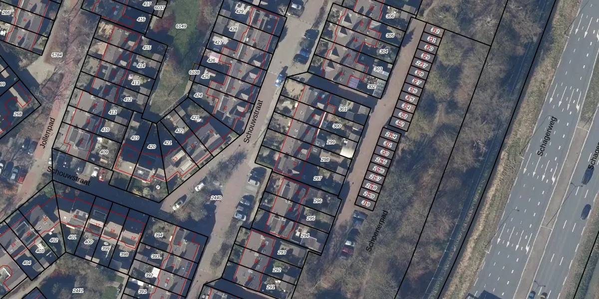 Het perceel waarop Schouwstraat 42 staat heeft een oppervlakte van 180 m². Dit is een middelgroot perceel. De perceeloppervlakte wordt geregistreerd door het Kadaster. Gedetailleerde informatie over de maten van dit perceel kunt u vinden in het rapport Kadastrale kaart met maatvoering van Schouwstraat 42.