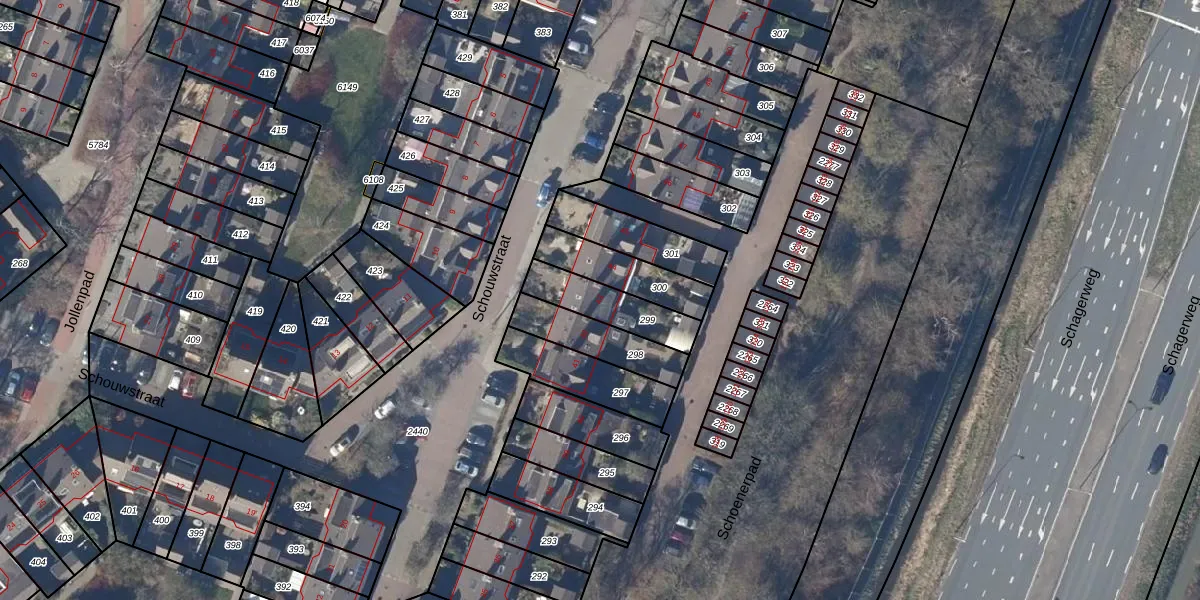 Het perceel waarop Schouwstraat 43 staat heeft een oppervlakte van 180 m². Dit is een middelgroot perceel. De perceeloppervlakte wordt geregistreerd door het Kadaster. Gedetailleerde informatie over de maten van dit perceel kunt u vinden in het rapport Kadastrale kaart met maatvoering van Schouwstraat 43.