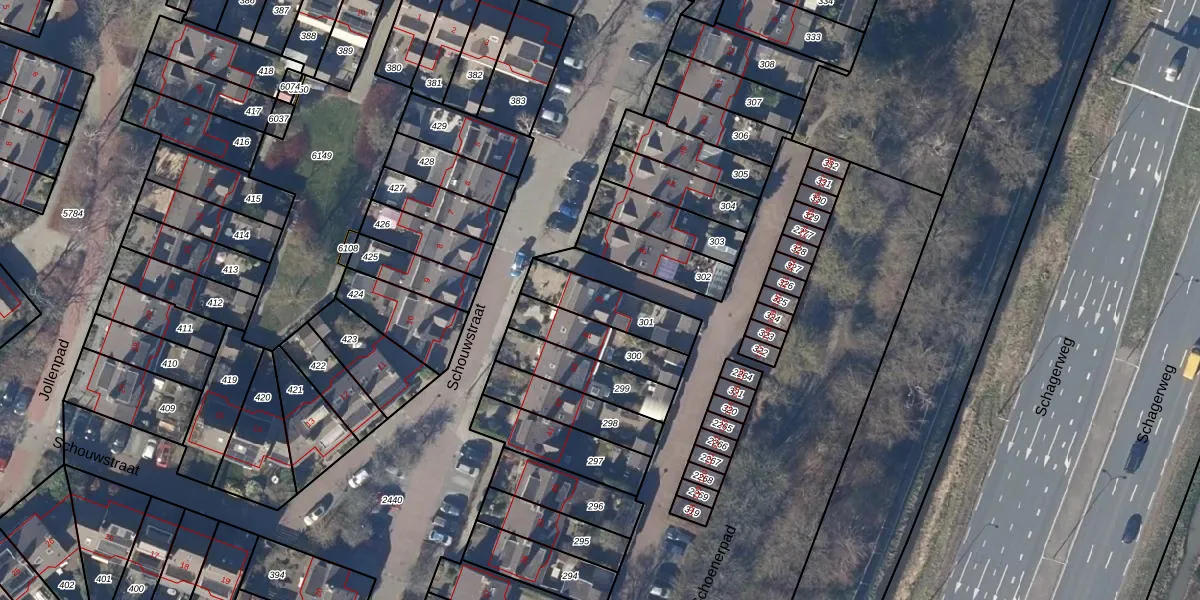 Het perceel waarop Schouwstraat 45 staat heeft een oppervlakte van 189 m². Dit is een middelgroot perceel. De perceeloppervlakte wordt geregistreerd door het Kadaster. Gedetailleerde informatie over de maten van dit perceel kunt u vinden in het rapport Kadastrale kaart met maatvoering van Schouwstraat 45.